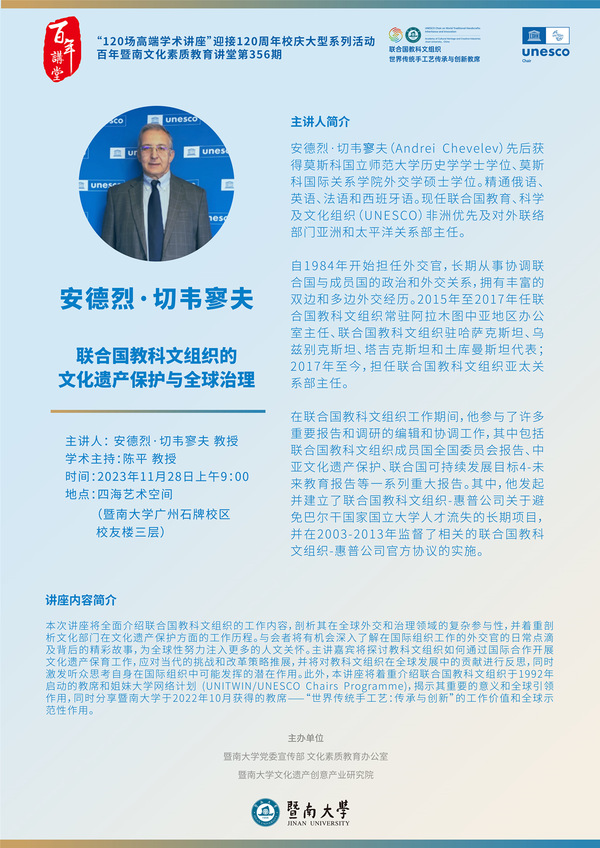 百年暨南文化素質(zhì)教育講堂第356期:傾聽(tīng)文化遺產(chǎn)的“心聲”——聯(lián)合國(guó)教科文組織的文化遺產(chǎn)保護(hù)與全球治理