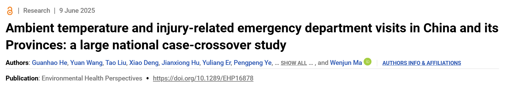 暨南大學(xué)和中國疾病預(yù)防控制中心合作發(fā)表氣候變化與傷害領(lǐng)域研究成果