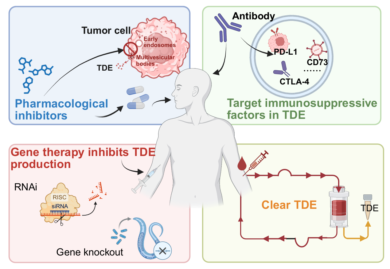 該論文系統(tǒng)闡述了基于EVs的癌癥治療策略及其臨床轉(zhuǎn)化路徑,重點探討了四大治療策略:1)利用EVs固有特性治療腫瘤;2)通過工程化改造提升EVs載藥與遞送效率;3)靶向腫瘤來源EVs(TDEs)合成關鍵分子以抑制其產(chǎn)生;4)清除腫瘤微環(huán)境中的TDEs?;贓Vs疫苗和雙特異性抗體的研究,綜述詳述了EVs免疫治療策略,AI在EVs靶向遞藥中的研究進展等,最后總結(jié)了EVs在癌癥治療中的臨床研究進展,并指出了亟待解決的關鍵挑戰(zhàn)。