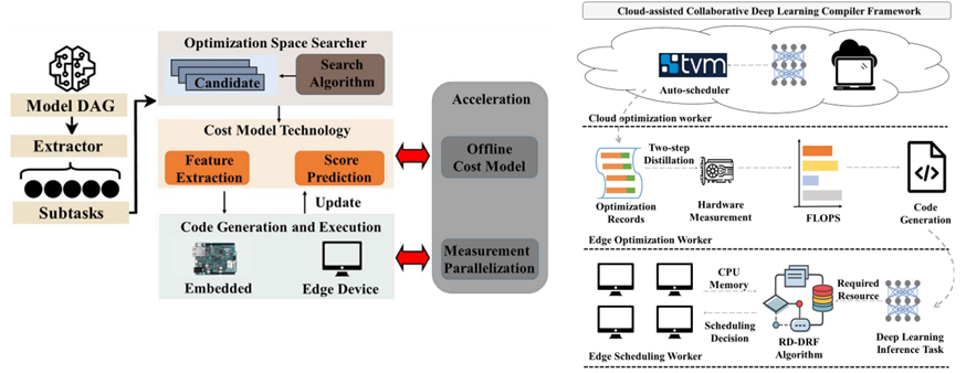暨南大學(xué)融媒體中心訊 信息科學(xué)技術(shù)學(xué)院計算機(jī)科學(xué)系青年教師吳文泰副教授與華南理工大學(xué)林偉偉教授(廣東省“珠江學(xué)者”,鵬城實(shí)驗(yàn)室雙聘研究員)團(tuán)隊、美國紐約州立大學(xué)李克勤教授(歐洲科學(xué)院院士,美國科學(xué)促進(jìn)會院士)團(tuán)隊合作,針對算力網(wǎng)的異構(gòu)資源協(xié)同與AI部署優(yōu)化技術(shù)開展深入研究,在體系結(jié)構(gòu)領(lǐng)域頂級刊物IEEE Transactions on Computers上發(fā)表論文“Cacomp: ACloud-assisted Collaborative Deep Learning Compiler Framework for DNN Tasks on Edge”。