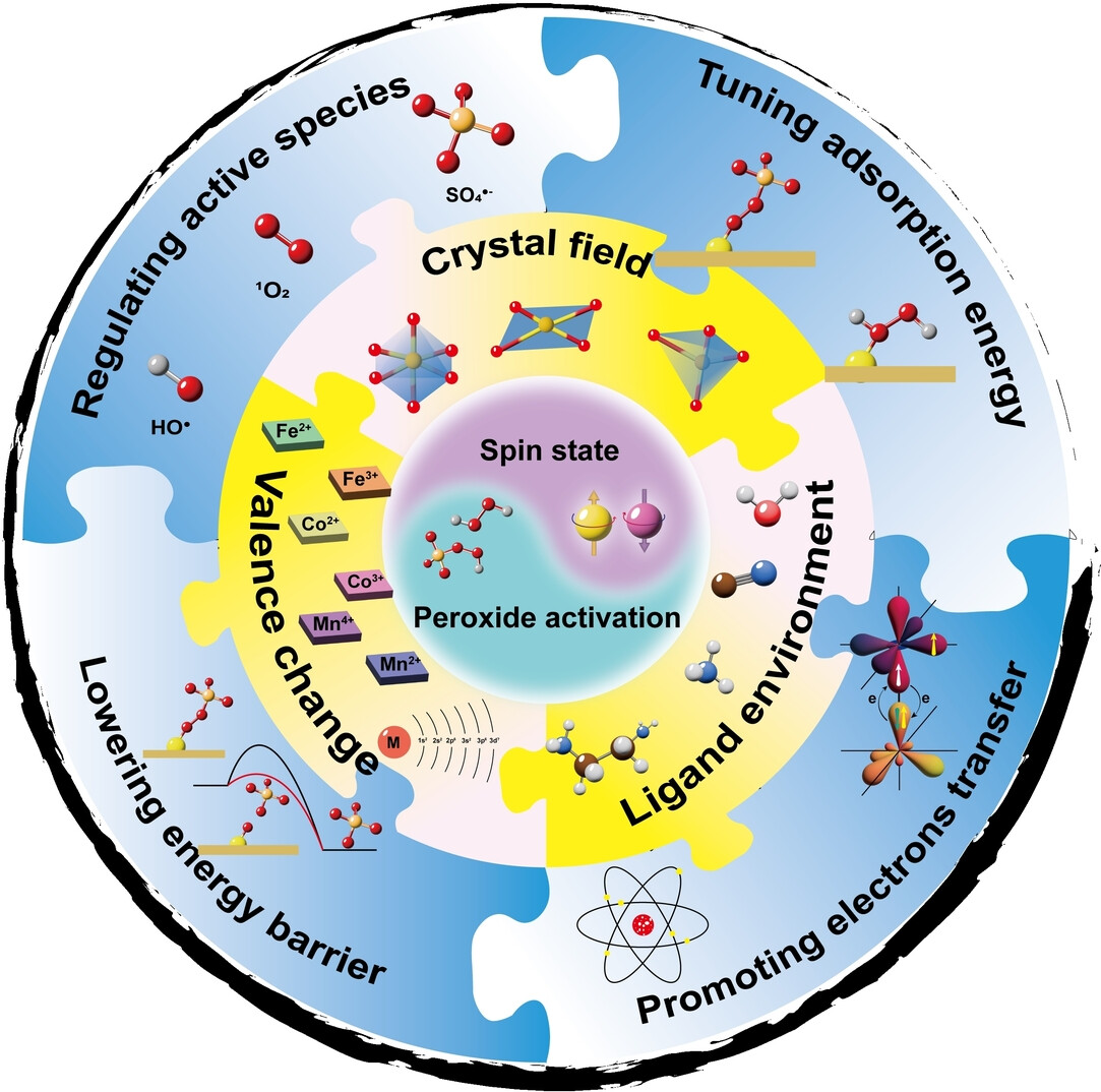 此外,課題組在Angewandte上系統(tǒng)綜述了高級氧化過程中的過氧化物活化調控機制,探討了通過晶場調控、配體工程與價態(tài)設計等手段調控活化材料自旋態(tài)策略,實現(xiàn)過氧化物高效活化(Angew. Chem. Int. Ed. 2025, 64, e202500791)。