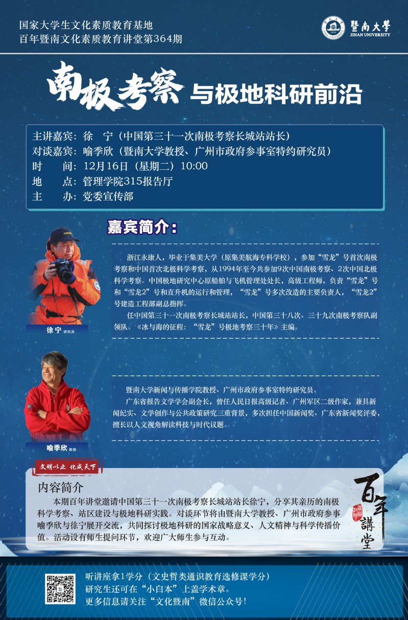 百年暨南文化素質(zhì)教育講堂第364期:徐寧:南極考察與極地科研前沿