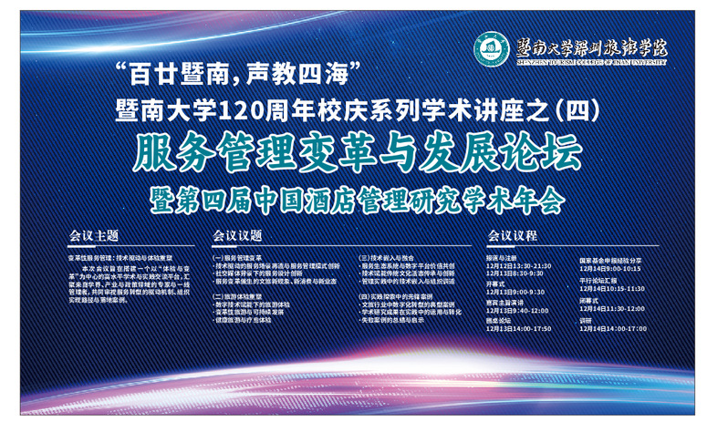 【百廿暨南,聲教四?!啃c系列學術(shù)活動(四)——服務管理變革與發(fā)展論壇暨第四屆中國酒店管理研究學術(shù)年會