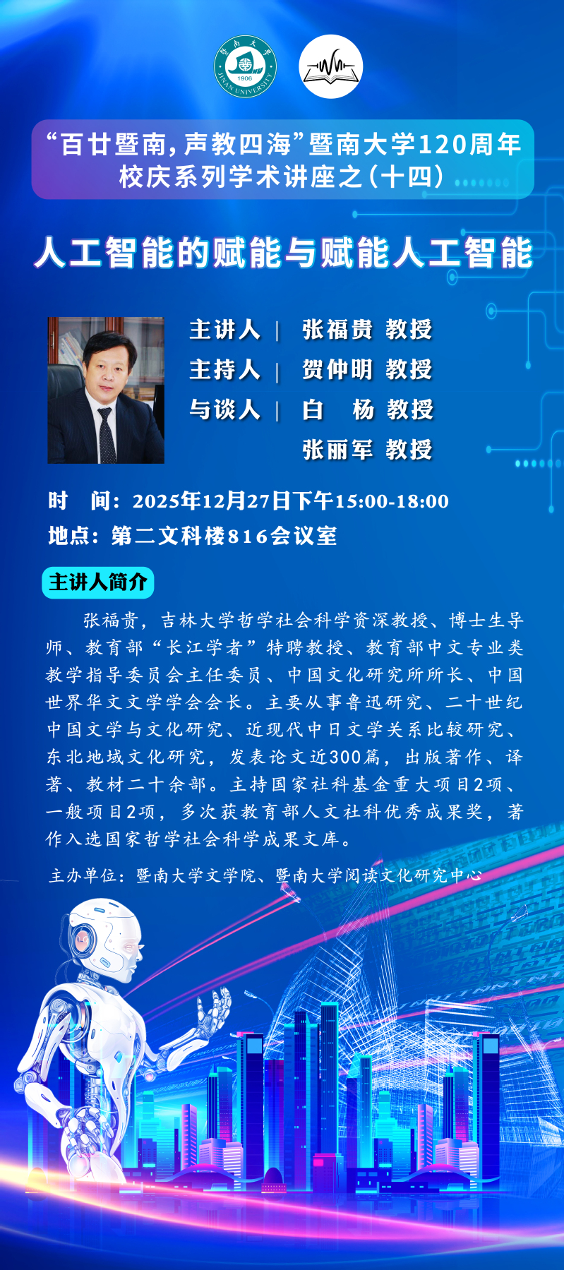 【百廿暨南,聲教四?!啃c系列學(xué)術(shù)活動(dòng)(十四)——人工智能的賦能與賦能人工智能